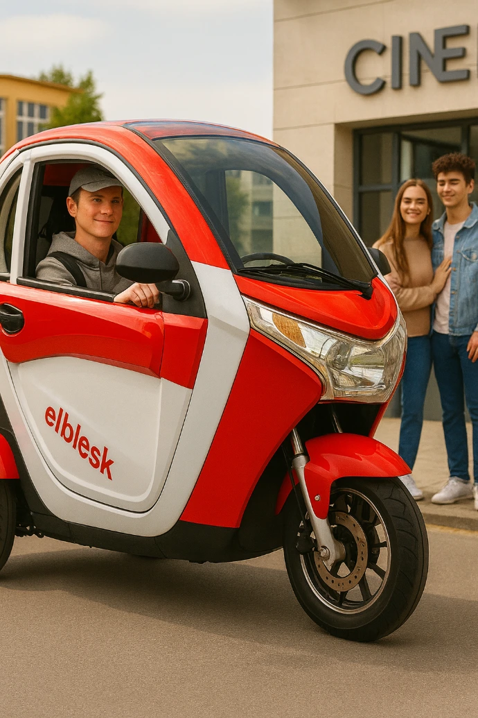 Ne. Tříkolka ELBLESK je kapotovaný skútr, který lze provozovat v jakémkoli počasí a dokonce i mýt tlakovou myčkou. Kabina je utěsněná proti povětrnostním vlivům odpovídajícím způsobem.